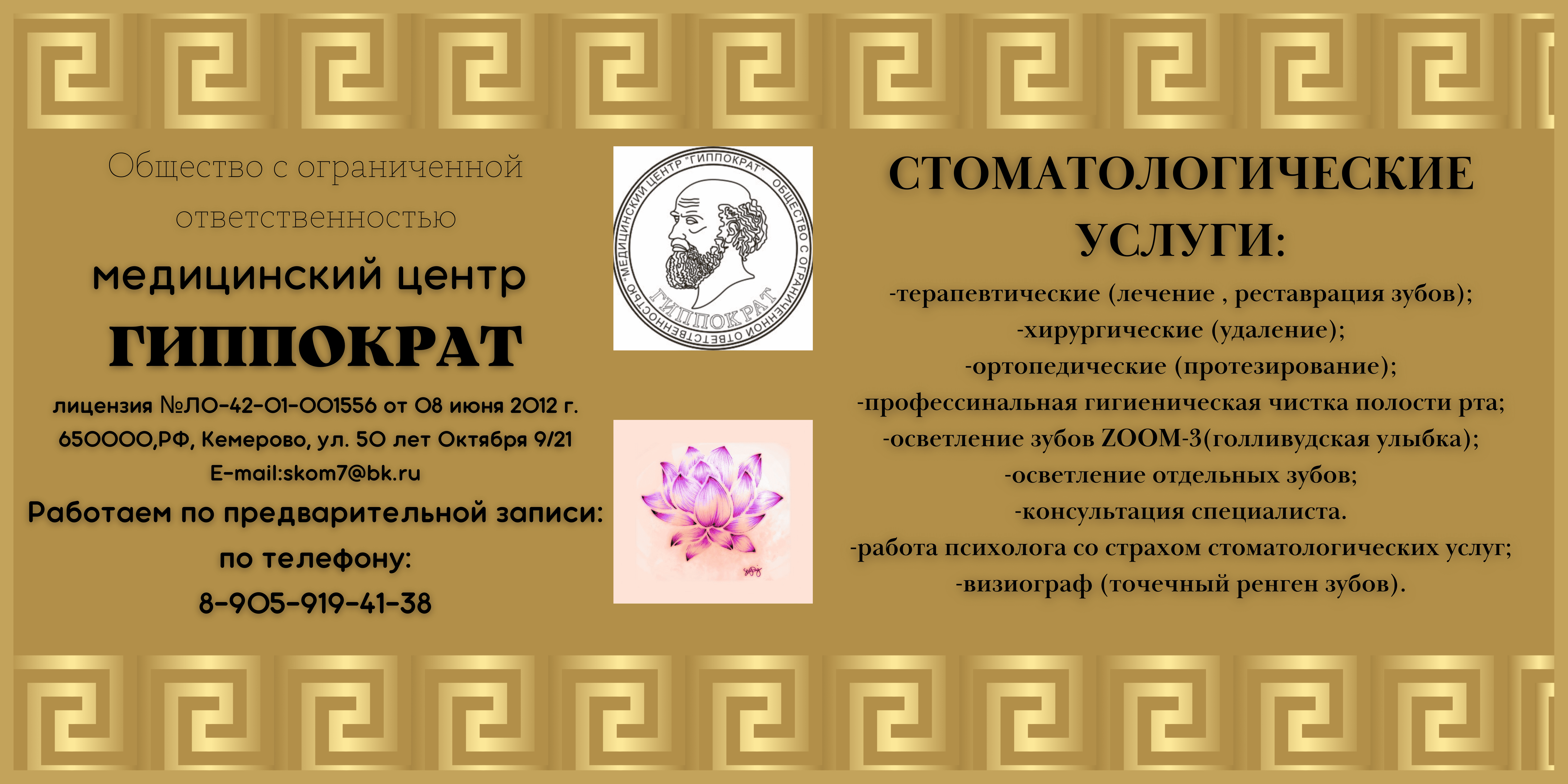 Клиника ООО "МЦ" Гиппократ" - это место, где ваша улыбка находится в надежных руках. Мы с удовольствием приветствуем вас в нашей клинике и гарантируем, что наше высококвалифицированное и дружелюбное персонал обеспечит вам самое лучшее стоматологическое обслуживание.